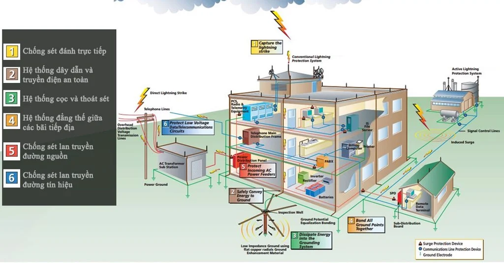 A comprehensive six-point lightning protection system is a state-of-the-art solution for lightning protection. In Vietnam, GIC provides the following solutions: