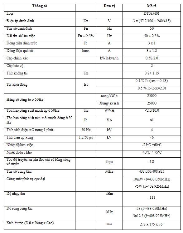 Công tơ điện tử 3 pha DT03M01 có những đặc trưng sau: