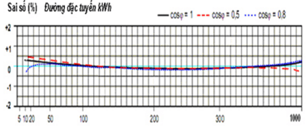 Đặc tuyến sai số của công tơ theo tải: