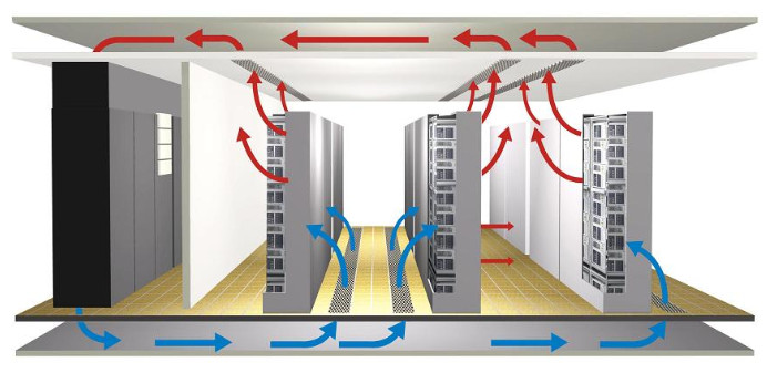 Chẳng hạn, trong một phòng làm văn phòng bình thường, chỉ cần 2 sự thay đổi luồng không khí mỗi giờ, trong khi các trung tâm dữ liệu, con số này phải tới 30 lần mỗi giờ, với 4000-5000 m3/giờ lưu lượng.