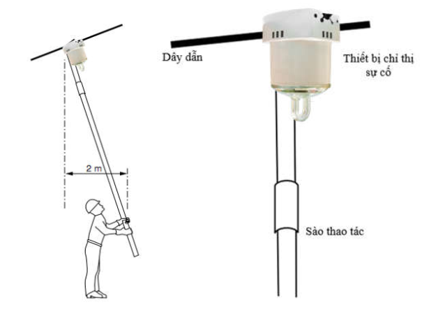 Lưu ý: Khi thao tác lắp thiết bị sự cố lên dây dẫn, tay cầm gần nhất (phía trên) của người thao tác phải cách xa dây dẫn theo phương thẳng đứng ít nhất 02 mét.