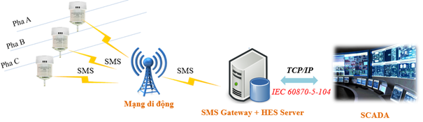 Đèn chỉ thị sự cố được kết nối với hệ thống SCADA thông qua giao thức IEC60870-5-104. Sử dụng hệ thống chuyển đổi trung gian HES-Server.